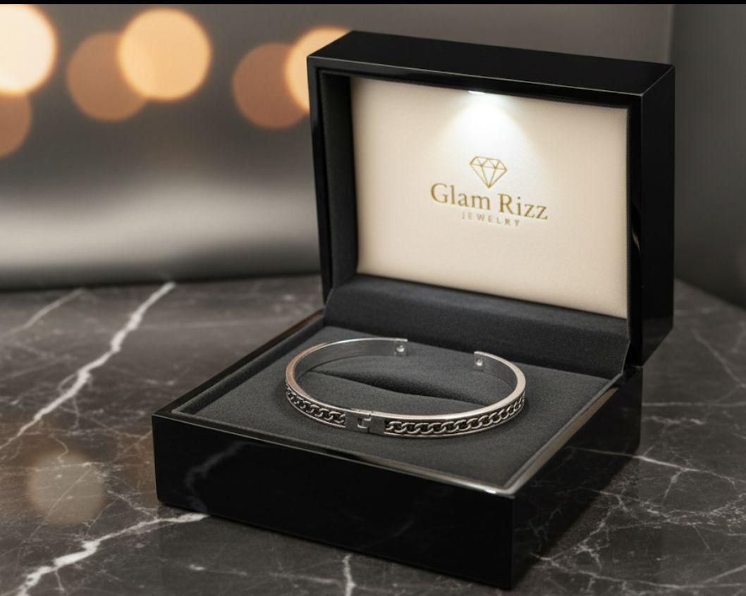 Ye GlamRizz ka stainless steel bracelet apne bold chain style ke sath ek powerful aur confident look deta hy β€” modern boys ke liye perfect accessory.